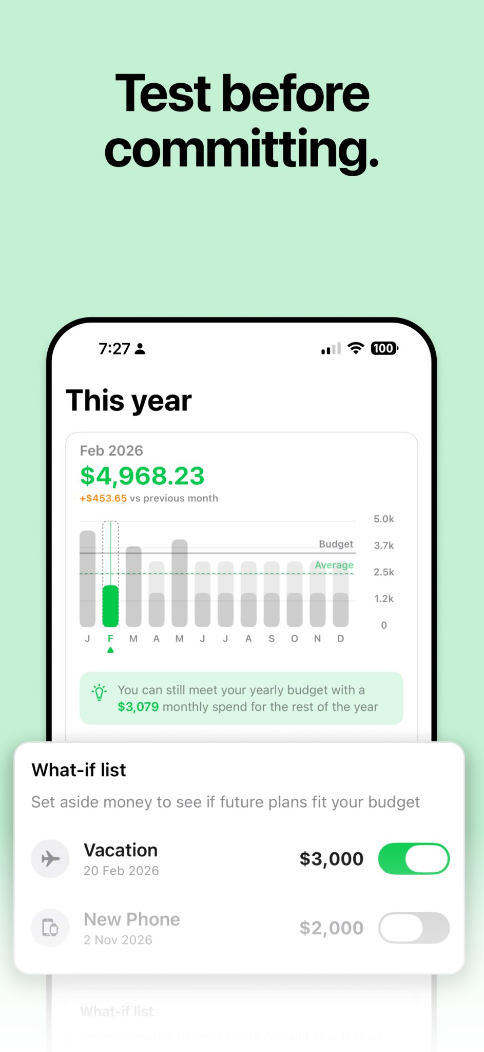 What-if scenarios help users to test future expenses without committing or reworking their budgets.