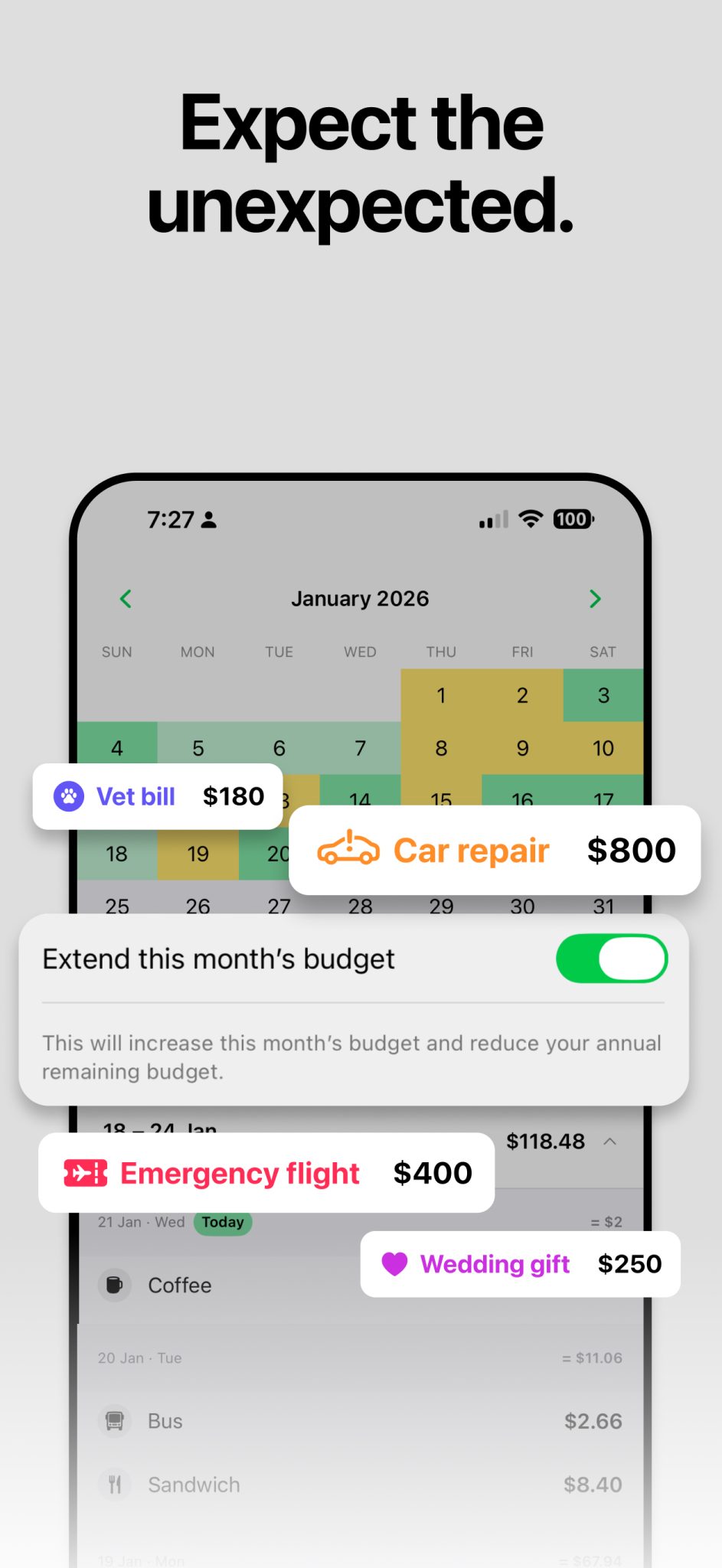 Extend the month’s budget when unexpected expenses or commitments come up.